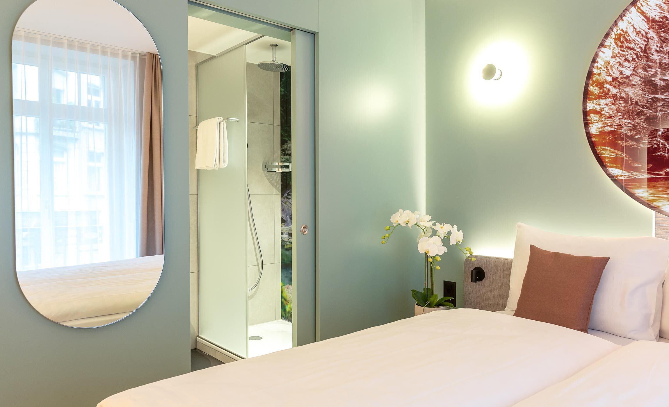 Mitten in Luzern befindet sich das Vier-Sterne-Hotel Cascada. Jedes einzelne Hotelzimmer wurde beim Umbau thematisch gestaltet und renoviert. Glasbilder von Schweizer Wasserfällen bilden eine durchgängige Story, die hochwertige Möbilierung, sanfte Farben in Pastelltönen und Lichtakzente verleihen ein stilvolles Ambiente.