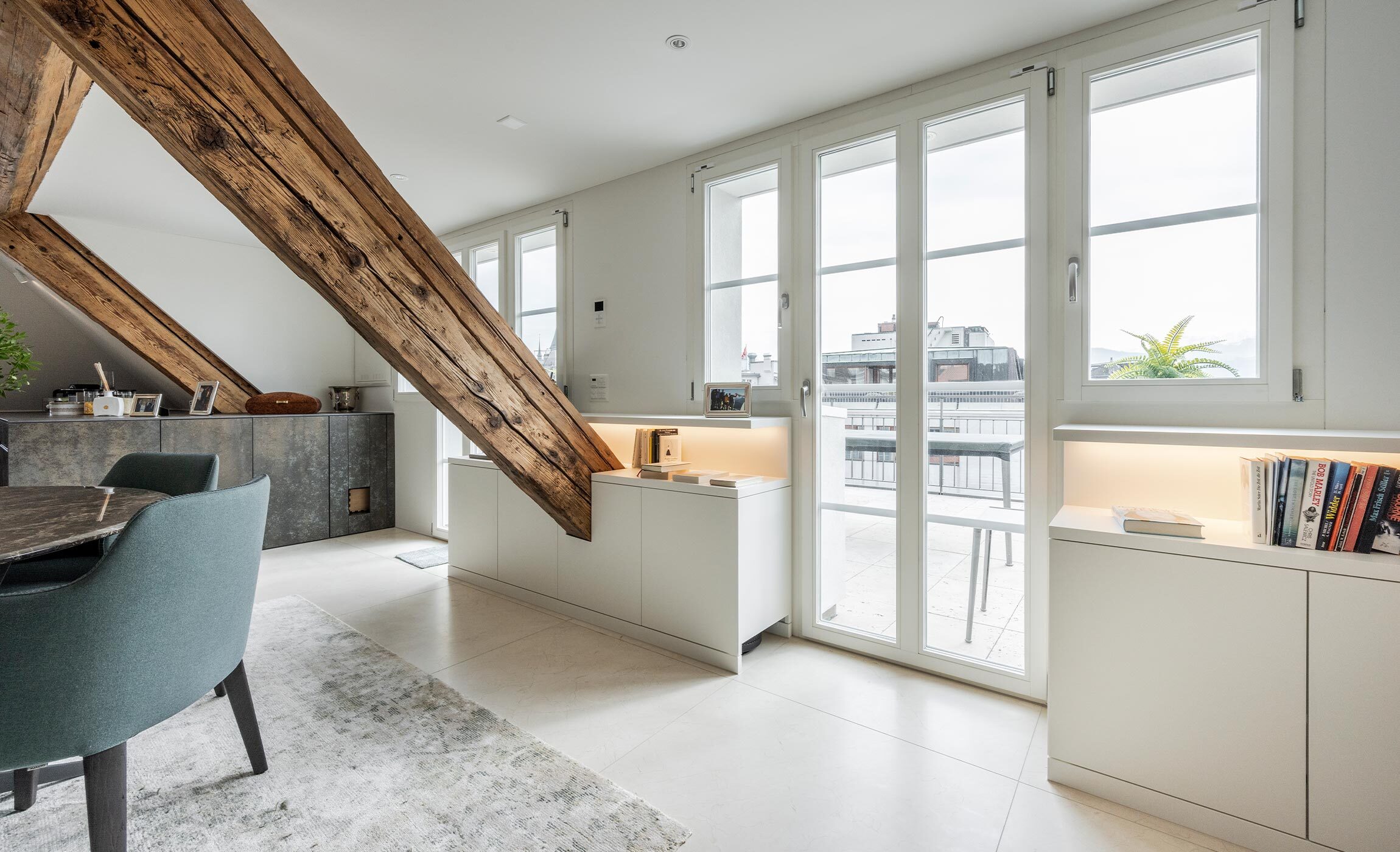 Das alte Gebäude mit historischem Hintergrund bietet einiges an Charme und Charakter. Heute beherbergt das Haus eine exklusive Wohnung. Der Blick von der Terrasse auf den prächtigen Vierwaldstättersee und das malerische Bergpanorama ist Programm. Wir durften für das Objekt den exklusiven Innenausbau und die Möbel bewerkstelligen.